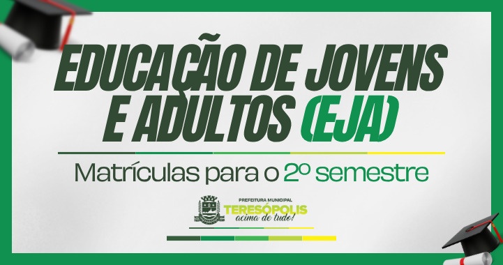Ótima oportunidade para as pessoas com mais de 15 anos de idade que não puderam estudar ou concluir o Ensino Fundamental: as matrículas para a EJA (Educação de Jovens e Adultos) para o 2º semestre estarão abertas entre os dias 28 de julho e 8 de agosto.
